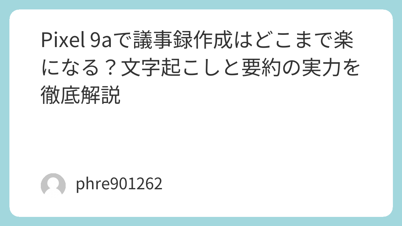 会議のたびにノートを開き、発言を追いかけながら要点を打ち込み、終わったあとに「結局、誰が何をやるんだっけ」と整理し直す。この流れに疲れて、「スマホ1台で議事録作成をもっと軽くできないか」と考える人は少なくありません。そこで注目されているのがPixel 9aです。