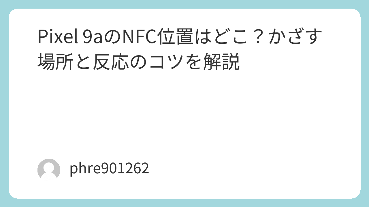 Pixel 9aのNFCがうまく反応しないとき、真っ先に疑いたいのは故障ではなく、もっと手前の条件です。