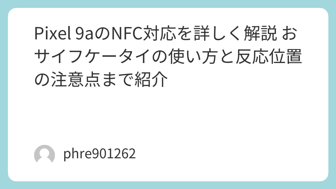 Pixel 9aのNFCはどんな人に向いているか