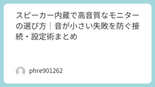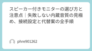 スピーカー付きモニターが気になるのって、だいたい「机をスッキリさせたい」「とりあえず音が出れば助かる」のどちらか。ここをハッキリさせるだけで、買い物の難易度が下がる。僕も最初は“内蔵=便利”だけで選んで、あとから「思ったより音が軽いな」と感...
