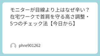 未分類 モニターが目線より上はなぜ辛い?在宅ワークで首肩を守る高さ調整・5つのチェック法【今日から】