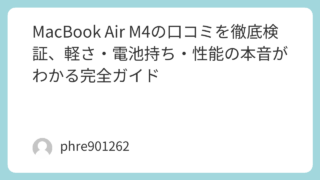 MacBook Air M4の口コミが気になる人への口コミを探している人の多くは、スペック表よりも「毎日使ってどうなのか」を知りたいはずです。結論からいえば、このモデルは派手な変化で驚かせるタイプではありません。その代わり、軽さ、静かさ、電...