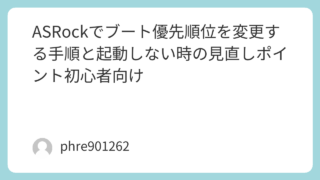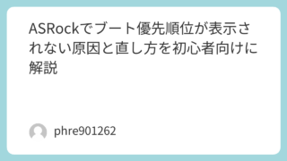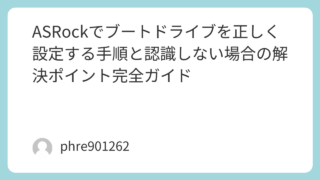 ASRockのブートドライブ設定で迷う人が多い理由ASRockのマザーボードでブートドライブを触ろうとすると、思った以上に戸惑う場面があります。とくに多いのが、「ストレージ自体は認識しているのに起動順位に出てこない」「入れ替えたSSDから立...
