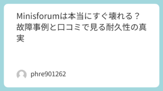 MinisforumのミニPCを購入しようと考えているが、「すぐ壊れる」という噂を耳にしたことがある人も多いのではないでしょうか。実際、インターネットで検索すると、「故障しやすい」「初期不良が多い」という意見を見かけます。本記事では、実際の...