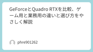 最初に結論とで迷ったとき、自分はまず「遊ぶためのGPUか、仕事を止めないためのGPUか」で切り分けます。ゲーム中心なら基本は。CADや設計、検証、長時間の業務運用まで含めて安定性を買うなら系を見ます。なお、は旧世代の呼び方で、今の現行ワーク...
