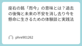 未分類 座右の銘「而今」の意味とは?過去の後悔と未来の不安を消し去り今を懸命に生きるための体験談と実践法