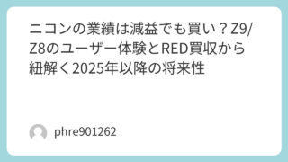 未分類 ニコンの業績は減益でも買い?Z9/Z8のユーザー体験とRED買収から紐解く2025年以降の将来性