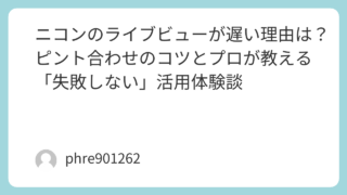ニコンの一眼レフを手にして、意気揚々と背面液晶をオンにした瞬間、「あれ、ピントが合うのが遅くない?」と戸惑ったことはありませんか。ファインダーを覗けば瞬時に「ピピッ」と合うのに、ライブビューに切り替えた途端、レンズが迷うように前後する。この...