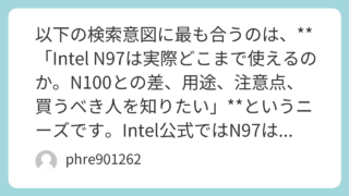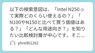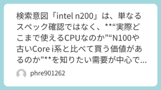 未分類 以下の検索意図では、ユーザーは「Intel Celeron N4000は実際どうなのか」「今でも使えるのか」「どんな用途なら後悔しないのか」を知りたい可能性が高いです。そこで、SEO上は“性能・できること・できないこと・体験談・おすすめしない人”まで一気に答える構成が相性良好です。N4000は2017年発表のモバイル向け2コア2スレッドCPUで、最大2.60GHz、TDP 6Wという省電力寄りの設計です。(Intel)