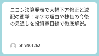 未分類 ニコン決算発表で大幅下方修正と減配の衝撃!赤字の理由や株価の今後の見通しを投資家目線で徹底解説。