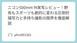未分類 ニコン500mm f4実写レビュー!野鳥もスポーツも劇的に変わる圧倒的描写力と手持ち撮影の限界を徹底解説