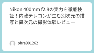 未分類 Nikon 400mm f2.8の実力を徹底検証!内蔵テレコンが生む別次元の描写と異次元の撮影体験レビュー