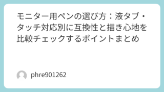 「モニター ペン」でたどり着く人が探しているのは、だいたい二択です。液晶ペンタブレット(ペンディスプレイ)で絵を描くための“専用ペン”なのか、タッチ対応モニターを指の代わりに操作する“タッチペン”なのか。ここを混ぜてしまうと、買い物も設定も...