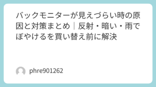 バックモニターが「なんか見えにくい」。この症状、いきなり故障を疑うより先に、だいたい決まった原因を潰すほうが早い。結論から言うと、見えづらさの正体は“映像の性能”より“条件の悪さ”で起きることが多い。日差しの映り込み、レンズの汚れ、水滴、夜...